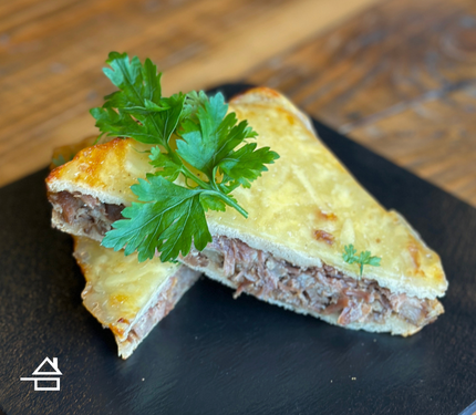 Croc' au confit de canard duxelles de champignons - Fait maison.