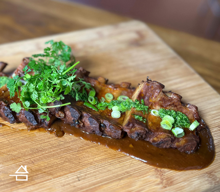225gr - 450grTataki de magret de canard, servi froid, pesto de coriandre - Fait maison.