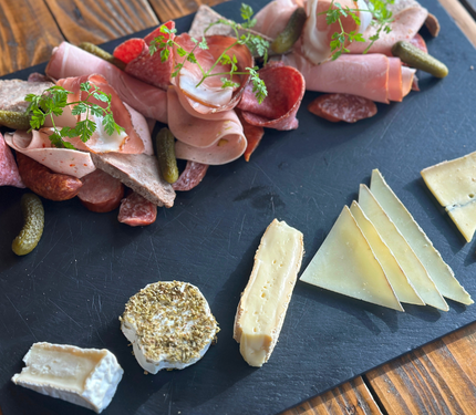 Camembert, beurre, fromage frais, paprika, carvi, ciboulette et oignons nouveaux.