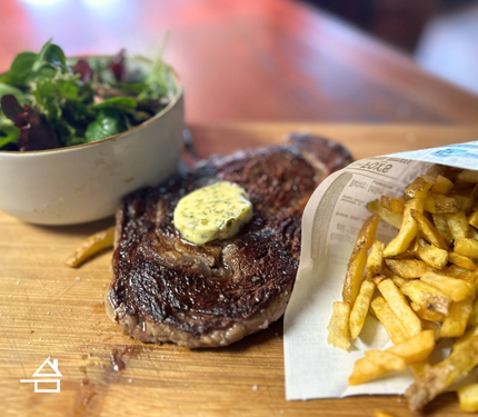 350gEntrecôte VBF, frites, salade et beurre maître d'hôtel - Fait maison.